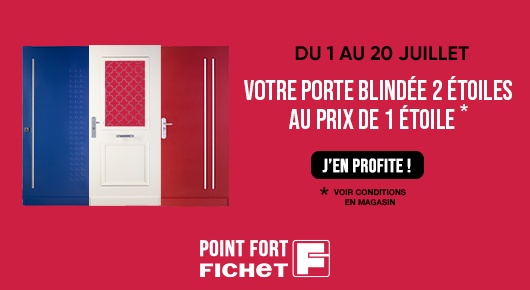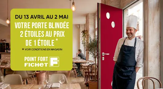 Du 9 mars au 31 mars 2026, Point Fort Fichet propose une offre spéciale sur les portes blindées pour maison ou appartement : la pose est offerte *.