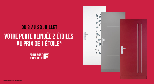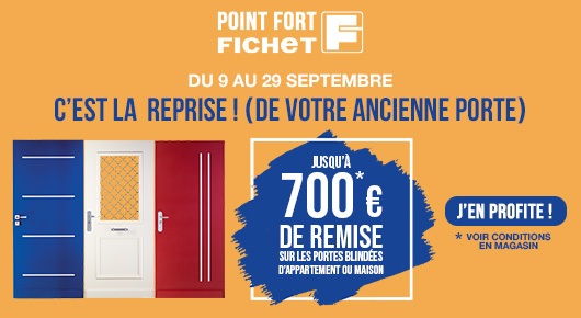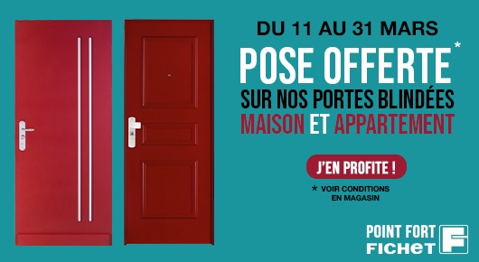 Du 9 mars au 31 mars 2026, Point Fort Fichet propose une offre spéciale sur les portes blindées pour maison ou appartement : la pose est offerte *.